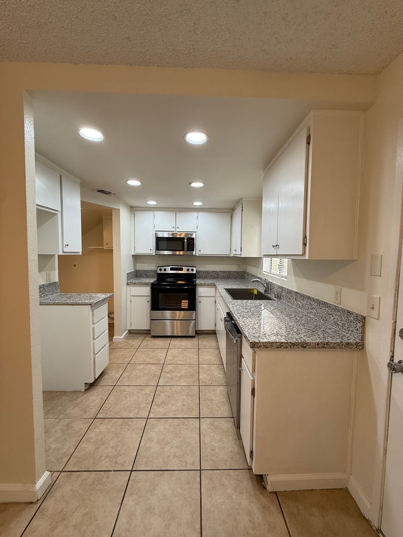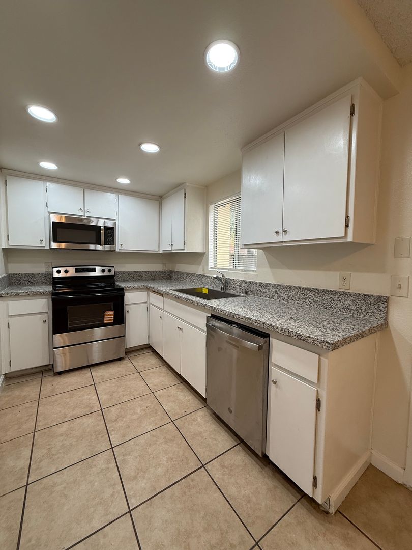 Gorgeous REMODELED3 bedroom 2.5 bath Townhome in Northeast Bakersfield with SOLAR, located near Hwy 178. This unit is absolutely beautiful. Unit features a very spacious floor plan of 1150 sq ft, 3 bedrooms, 2.5 baths, beautiful vinyl laminate flooring throughout, 2 tone paint, granite in kitchen, indoor laundry hook ups, 1 car detached garage, and a private fenced in back yard!