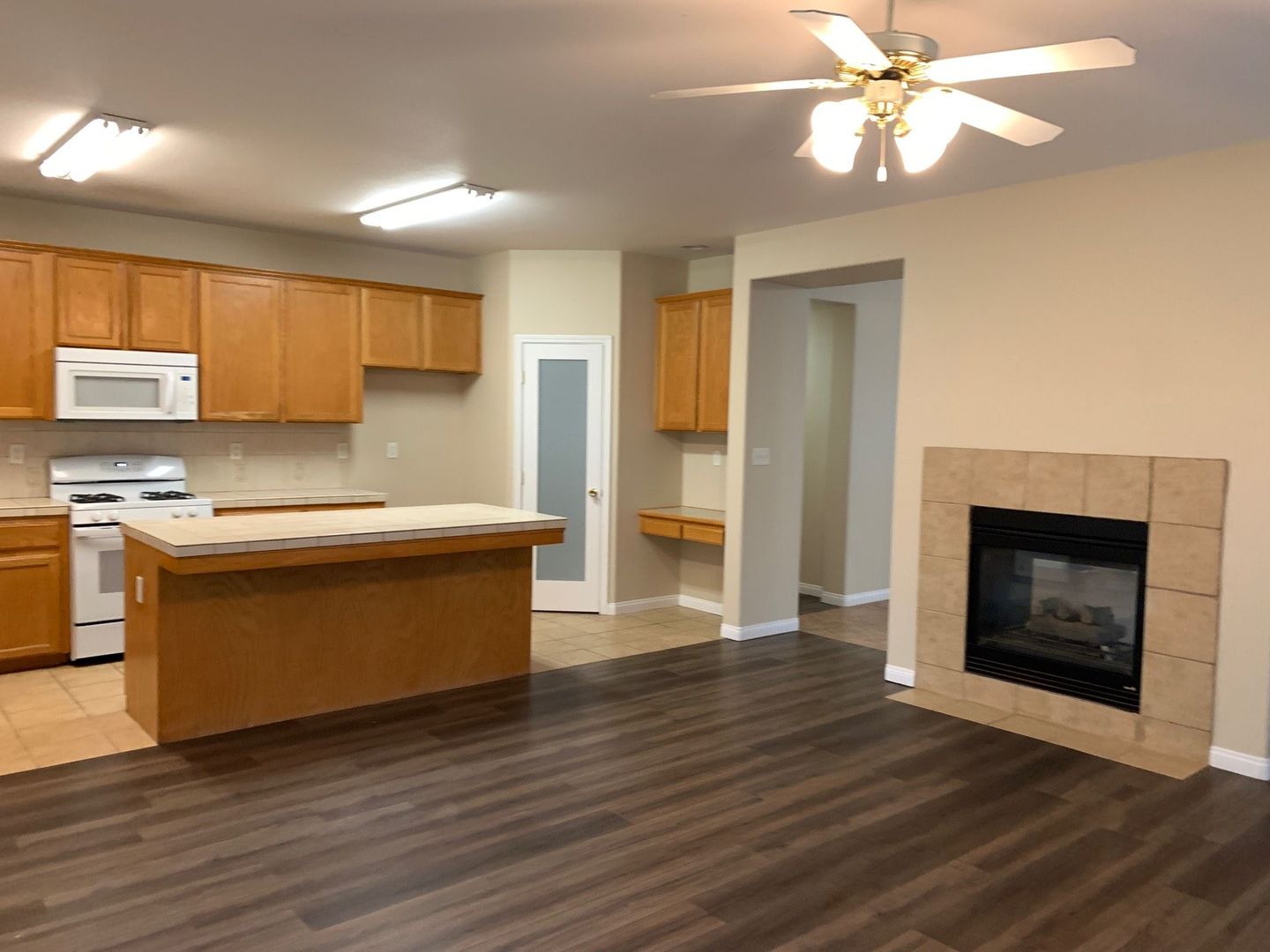 Beautiful single story home in Northwest Bakersfield located near Jewetta Ave and Meacham Rd. Home features 2127 sq ft, 4 bedrooms, 2 baths, 2 tone paint & ceiling fans throughout, separate living and family rooms w/double sided gas fireplace, beautiful vinyl wood looking laminate flooring in living room, family room and hall way, new carpet in the bedrooms, large master suite with fireplace, and an attached 2 car garage, large backyard with covered patio. Walking distance to Rosedale North Elementary School. Gardening service is included.