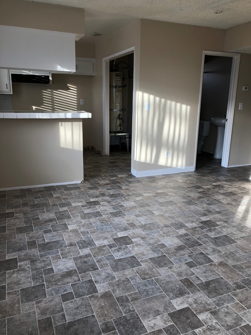 2 bed 1 bath upstairs apartment in NE Bakersfield, located near Columbus St and River Blvd. Vinyl flooring throughout. Indoor laundry hookups. Includes water.