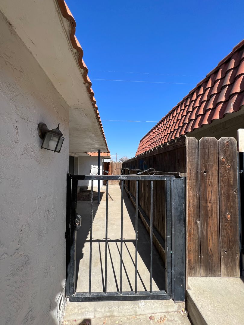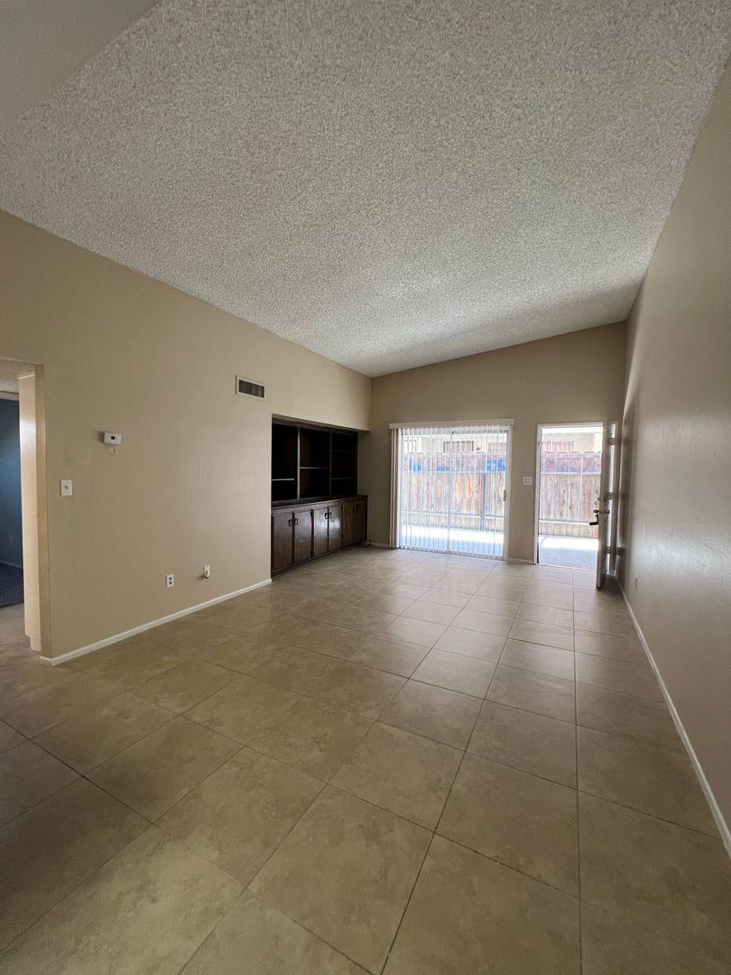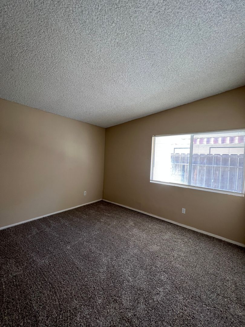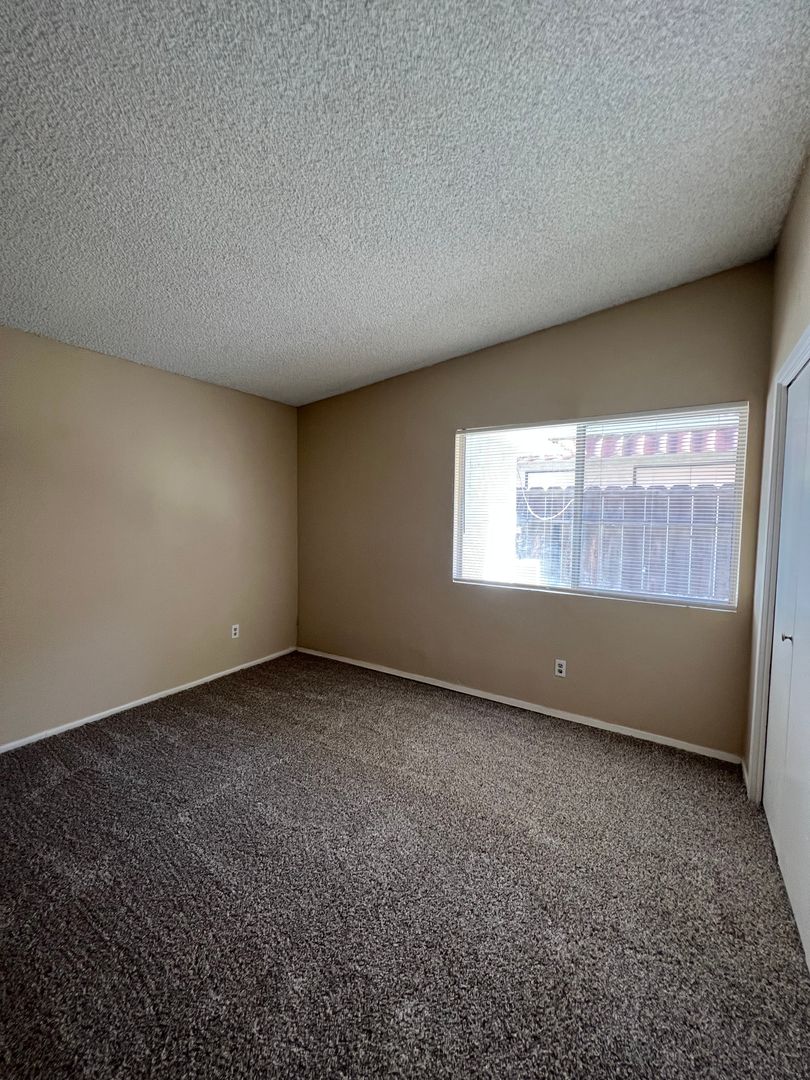 Cute single story unit in South Bakersfield. Located near Planz Rd between Hughes Lane and South H Street. Unit features 2 spacious bedrooms, 1 bath, beautiful tile flooring in all areas except for carpet in the bedrooms, central heating and air, large private covered patio, laundry hookups, and assigned covered parking. Water and trash are included. Sorry NO PETS are permitted.