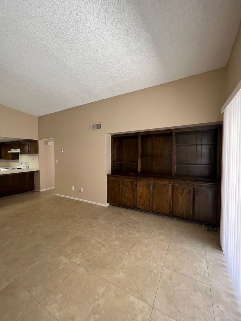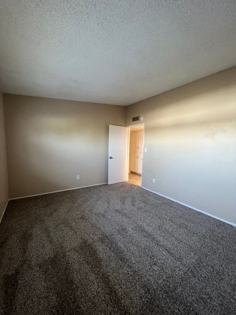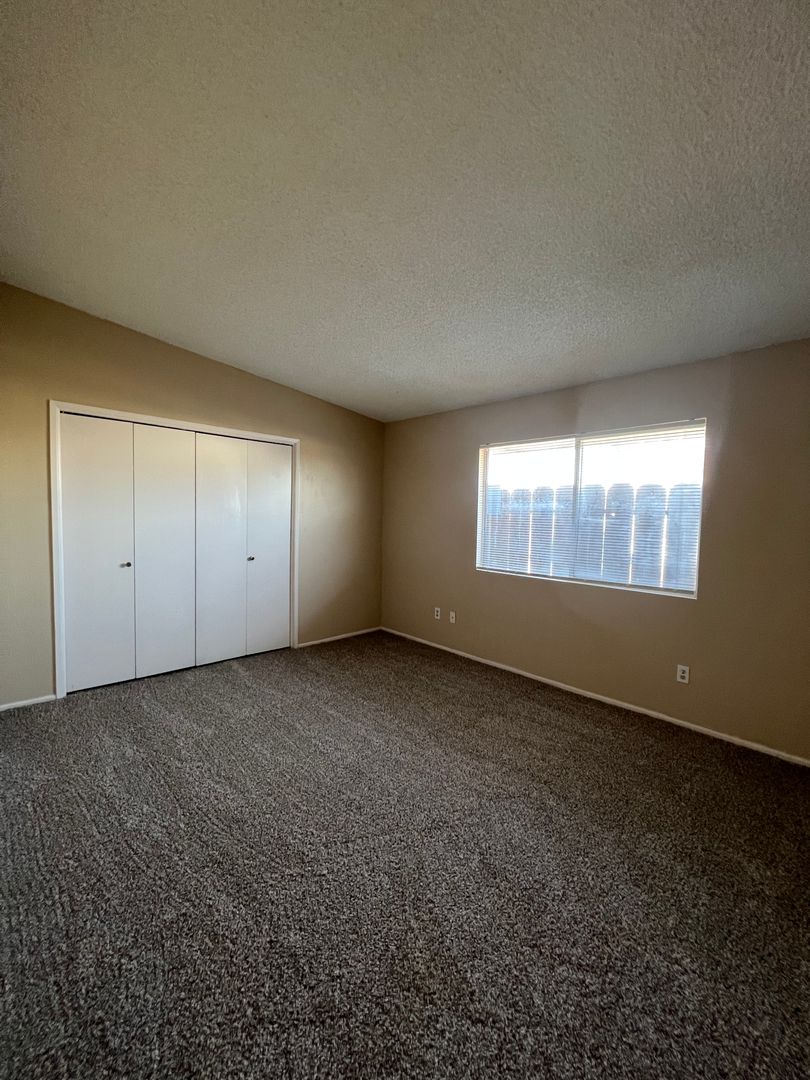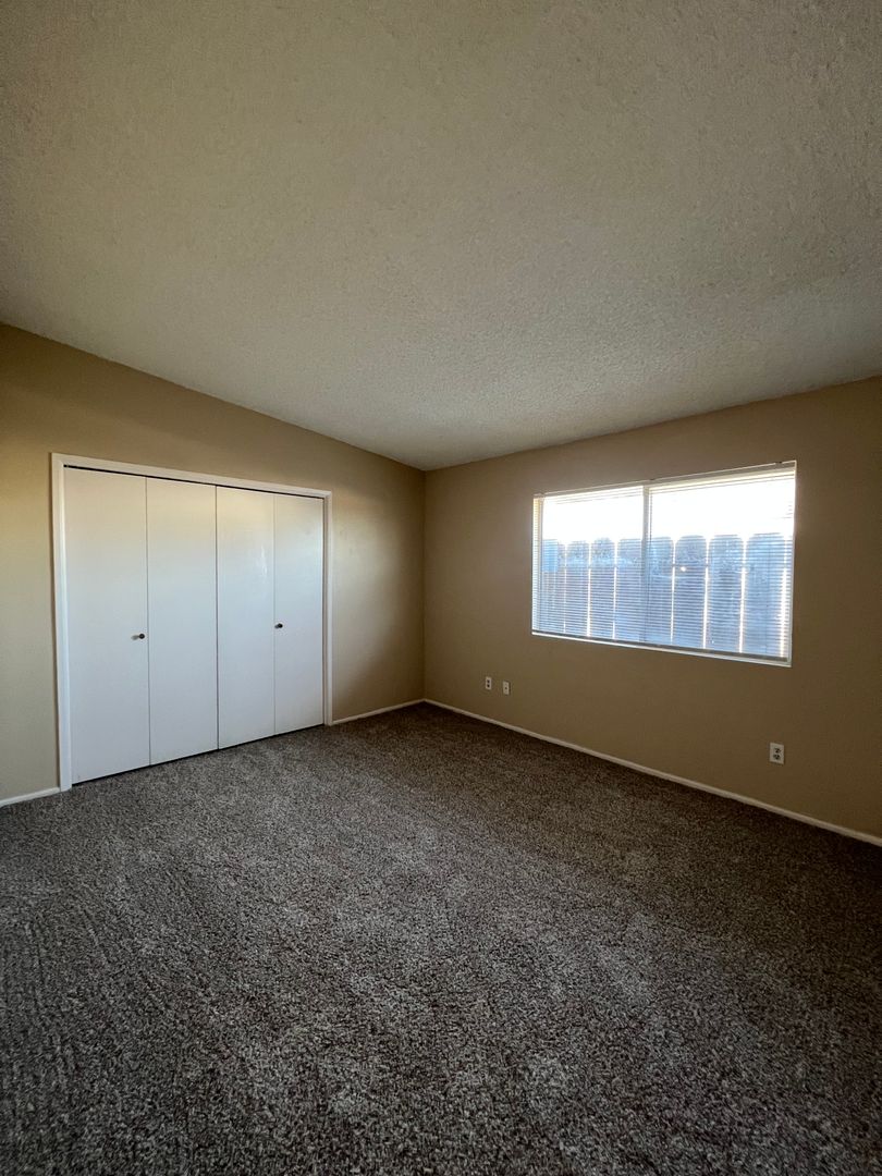 Cute single story unit in South Bakersfield. Located near Planz Rd between Hughes Lane and South H Street. Unit features 2 spacious bedrooms, 1 bath, beautiful tile flooring in all areas except for carpet in the bedrooms, central heating and air, large private covered patio, laundry hookups, and assigned covered parking. Water and trash are included. Sorry NO PETS are permitted.