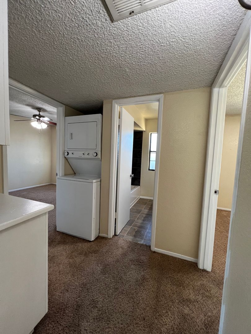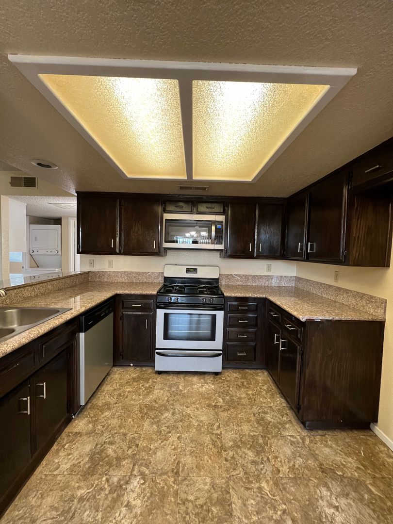 GREAT 2 bedroom 1 bath upstairs apartment in SW Bakersfield for rent. This unit is in the popular Quailridge neighborhood behind Frugatti’s. Unit has a private front porch/patio and includes a stackable washer and dryer, and granite counters. Water and gardener are included. No Pets are permitted unless valid ADA exception.