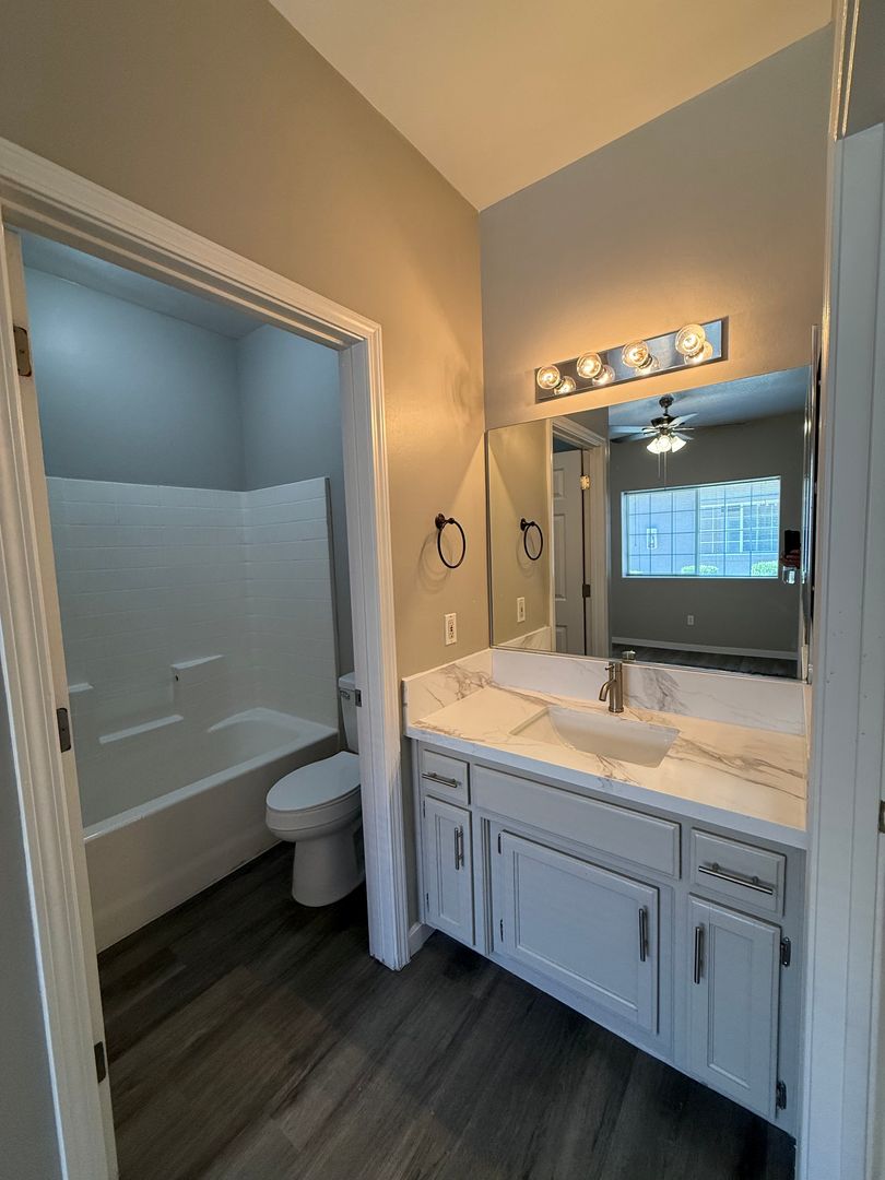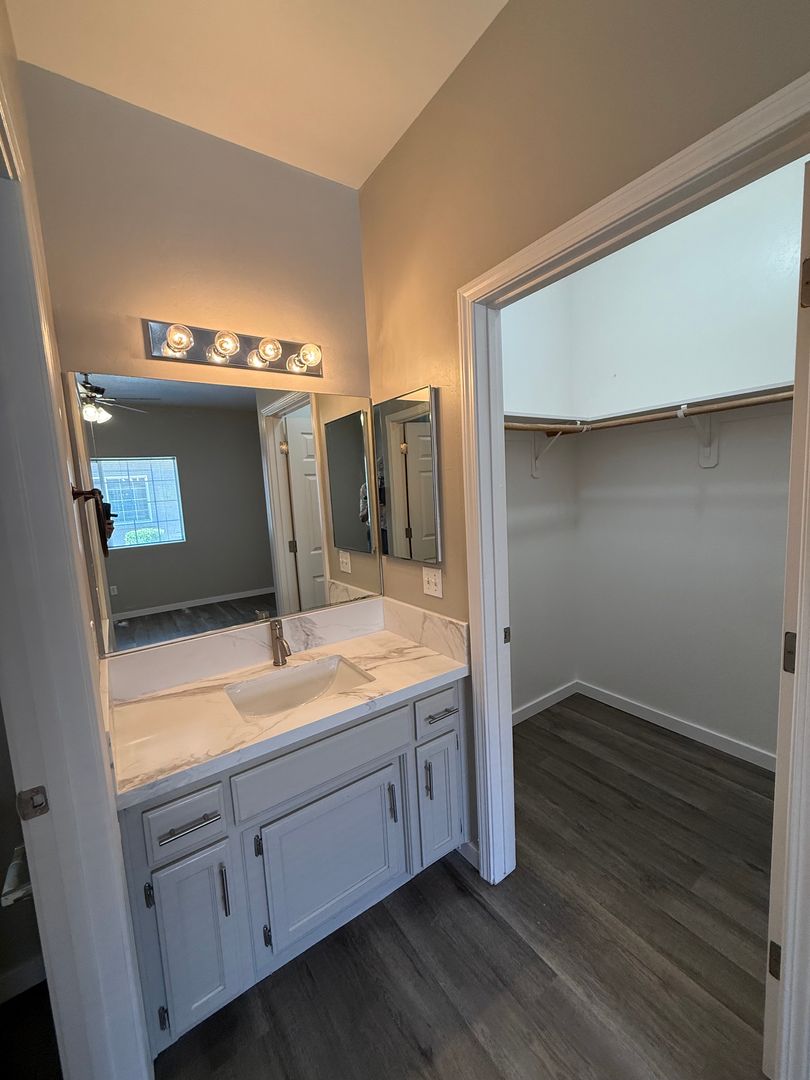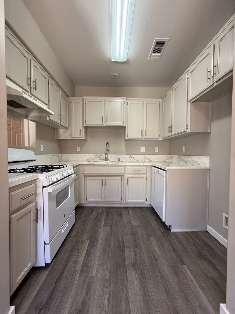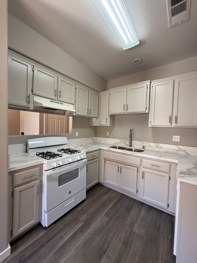 This BEAUTIFUL 2 bedroom 2 bath unit with 2 car garage and laundry hookups has just been completely remodeled and is ready for YOU!! This unit features brand new LVP flooring, Onyx/Granite Coutertops, two tone paint, laundry hookups, a private patio, and an attached 2 car garage. Includes water and gardener. Sorry NO PETS permitted at this property.