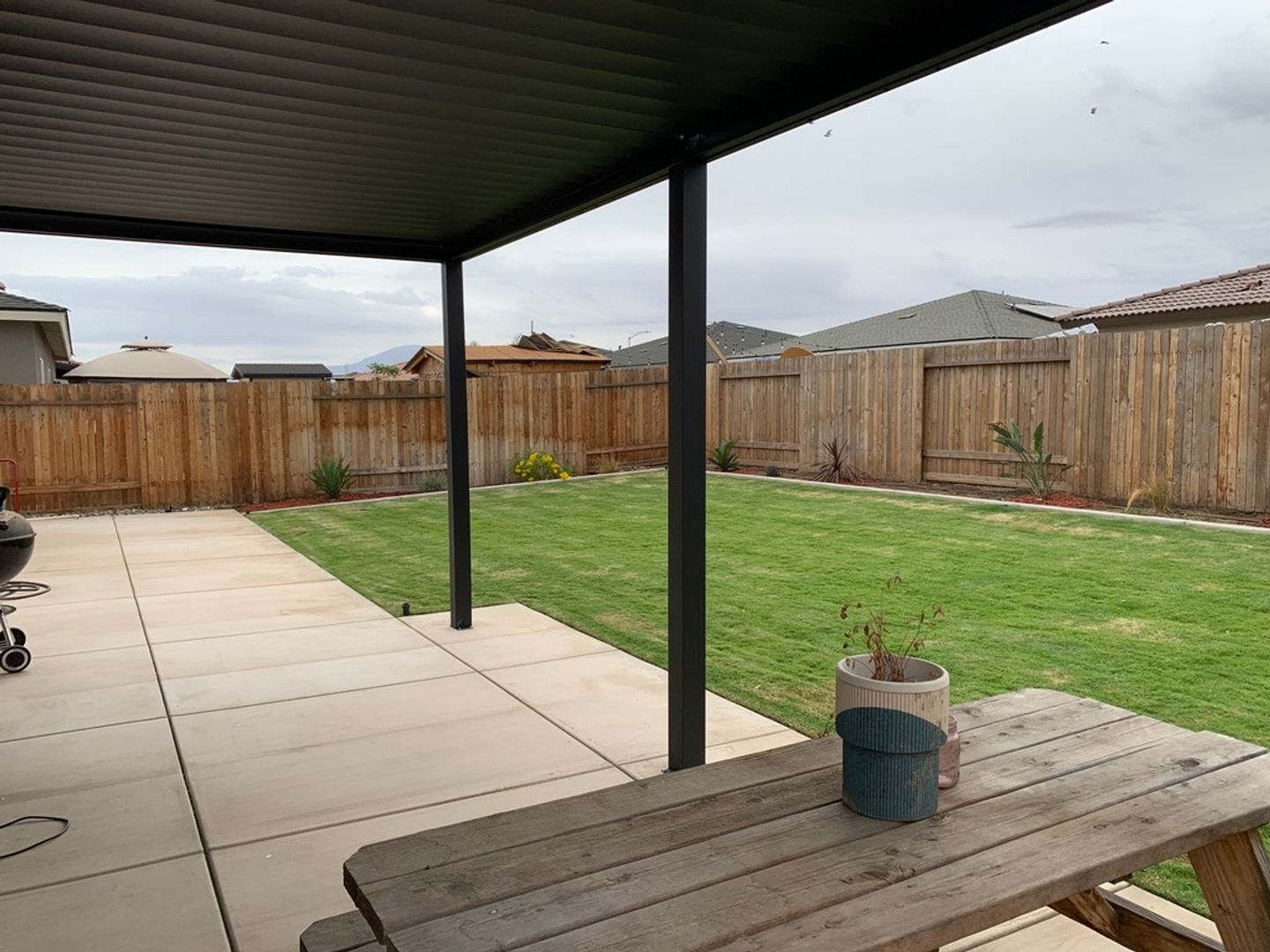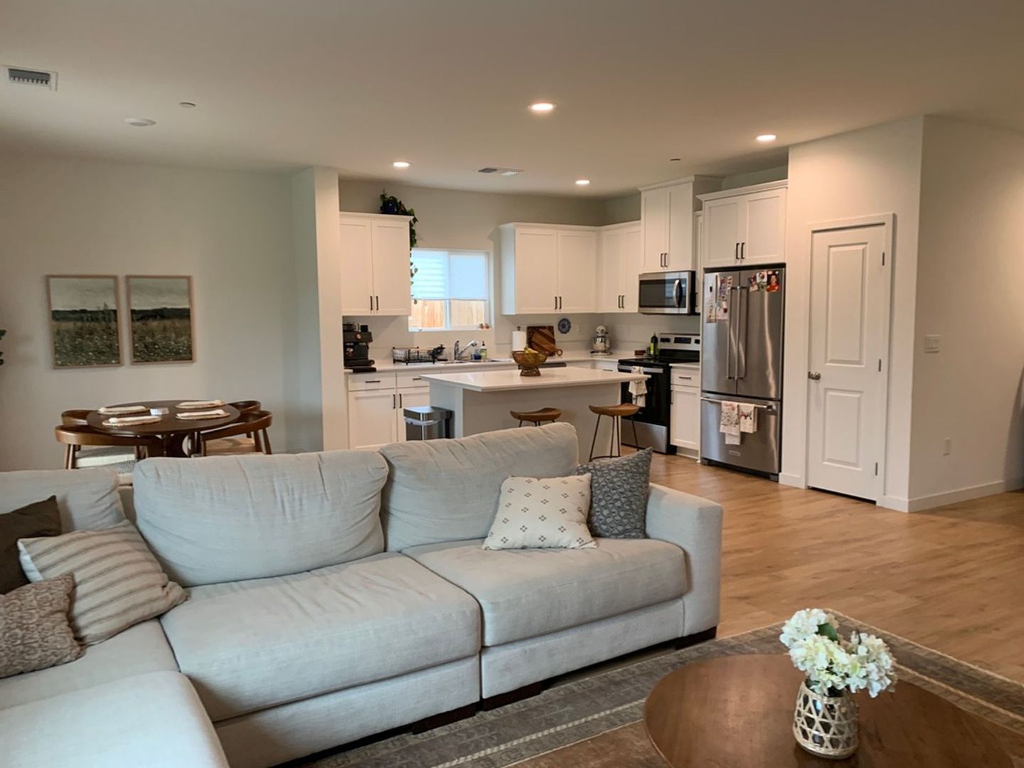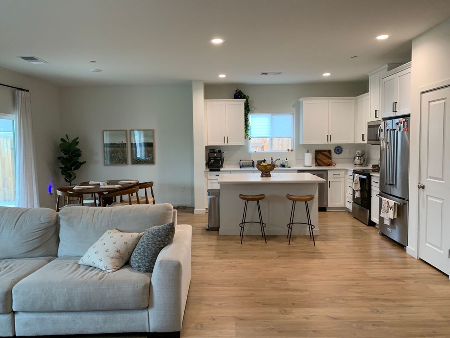 Beautiful 2023 built home in NE Bakersfield near Panama Lane & Union Ave. Home features 1689 sq ft, 3 beds, 2 baths, quartz countertops, stainless steel appliances including refrigerator, window coverings throughout, LVP flooring in main living spaces w/ carpet in bedrooms, solar panels, tankless hot water heater, beautifully landscaped backyard with covered patio, and an attached 2 car garage w/ 240 volt receptacle for EV car charger.