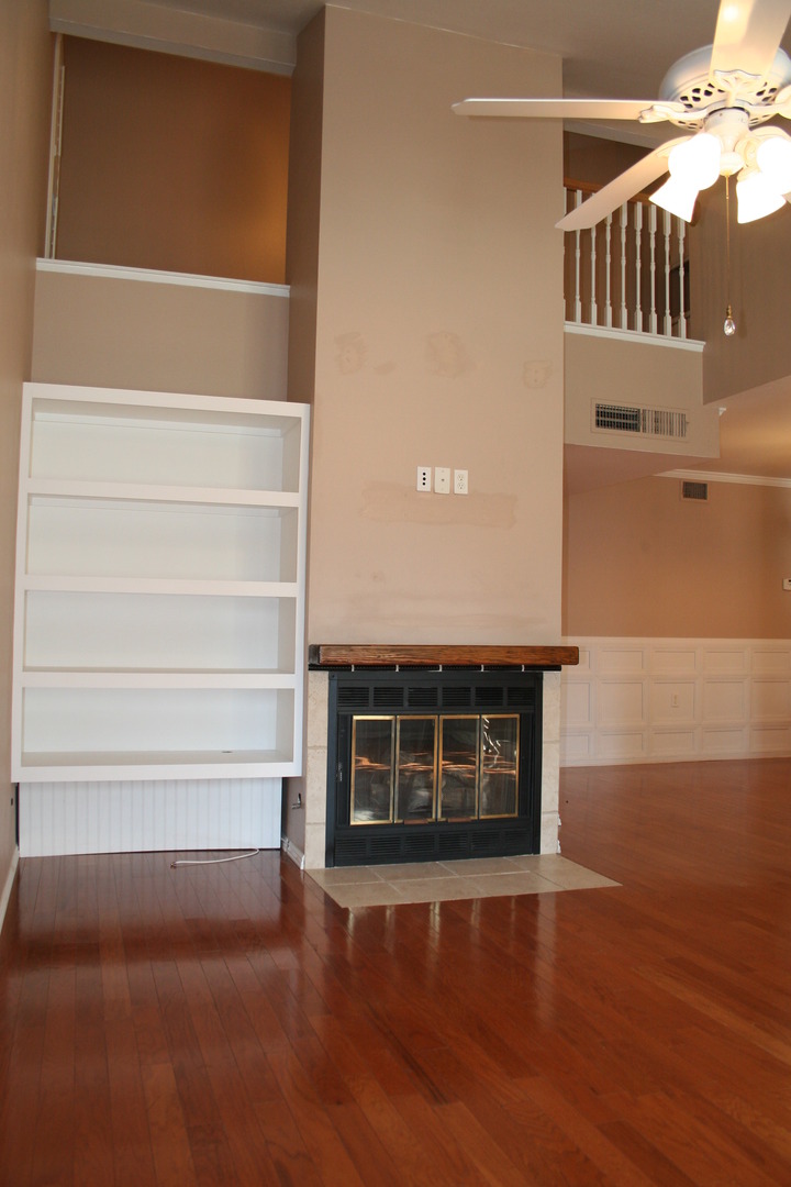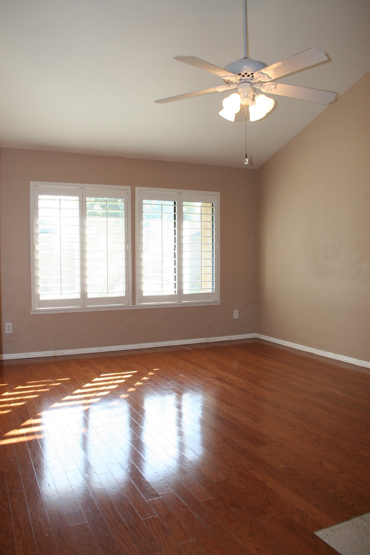 Highly upgraded with hardwood flooring, granite, 2 tone paint and more!! Living room features fireplace with soaring cathedral ceilings, custom shutters throughout, private fully enclosed patio.